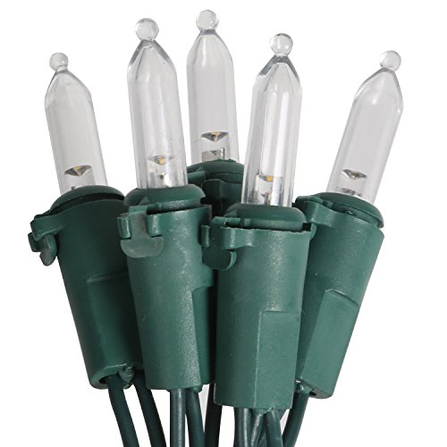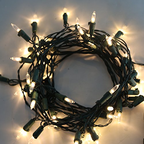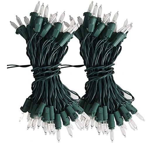 Hykolity Clear LED Christmas Lights - Indoor/Oudoor 100 Count Mini String Light Green Wire Warm White Connectable 4" Bulb Spacing UL Listed