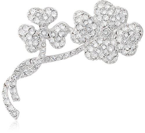 -. Feature : ガラス・メタル / 三つ葉と四葉の2つのクローバーが寄り添うエレガントなブローチ。クリスタルガラスのパヴェのみで表現したデザインで、キュートなモチーフをモダンエレガントに仕上げました。幸せを呼び込むといわれる、四葉のクローバー、大人の女性におつけいただきたいラッキーモチーフのブローチです。