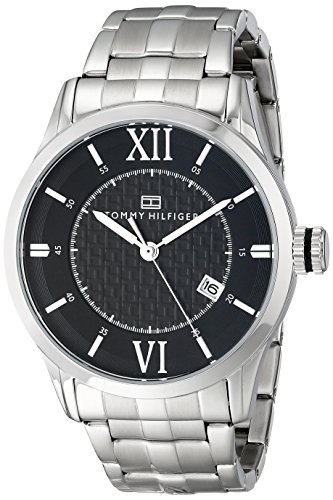-. Binding : Watch -. Brand : Tommy Hilfiger -. Department : mens -. EAN : 4895119711079 -. Feature : Round dress watch in silver-tone stainless steel with black dial featuring textured center zone and baton and Roman numeral hour markers / Quartz movement with display / Protective mineral crystal dial window / Features deployment-buckle closure / Water resistant to 99 feet (30 M): withstands rain and splashes of water, but not showering or submersion -. Label : Tommy Hilfiger -. Manufacturer : Tommy Hilfiger -. Model : 1710210 -. MPN : 1710210 -. PackageQuantity : 1 -. PartNumber : 1710210 -. ProductGroup : Watch -. ProductTypeName : WATCH -. Publisher : Tommy Hilfiger -. Studio : Tommy Hilfiger -. Title : Tommy Hilfiger Men's 1710210 Classic Silver-Tone Black Dial Watch -. UPC : 775924772097