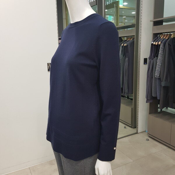소매진주장식으로 포인트를 준 라운드 니트 티 입니다