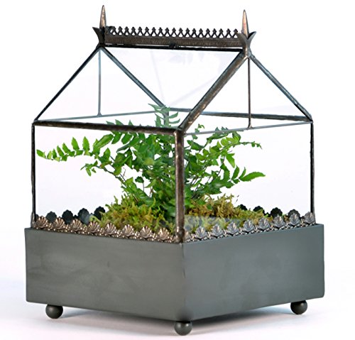 H Potter Wardian Display Case Glass Terrarium. Designed and manufactured by H Potter. Planting your terrarium: Start with a layer of pebbles and mix in a handful of charcoal chips, spread this mixture evenly on the bottom of your tray. Next add a layer sphagnum moss followed by a layer of soil to nearly fill your tray. Make small holes where you wish to insert your plants. If your plant has a root ball larger than the depth of your tray gently tease out the roots horizontally. Once you insert your plants into the little holes, bury the roots and tamp the soil to help remove air pockets. Water very lightly as your terrarium will be recycling its own water and you don't want waterlogged soil. If you are using moss: Moss Transplanting Techniques #1 To bring your moss back to life, soak each section of moss by hand in a bowl or even on a place on a rimmed cookie sheet and cover with water until saturated. #2 After about a minute the moss will become more pliable and easy to work with, (leaving it to absorb more water for a longer time period is fine). #3 Arrange you plants in the soil as desired #4 Place each moss section on the terrarium soil around your plants and firmly press or tamp the moss into the soil with your hand to ensure there are no air pockets underneath. Place the glass top on your terrarium, sit back and relax. What you place inside your terrarium is entirely a matter of personal taste. Do you prefer a green oasis? Do you enjoy the mystic of a fairy garden? Or perhaps exotic orchids are your fancy? The choices are endless. Your imagination is the only limit. Like the early Victorians you will want to place your new terrarium in a room with sunlight, but not directly by the window. If you notice your Wardian Case steaming up, just pop open the roof and vent a little, your eco-system just has a little too much water.Feature