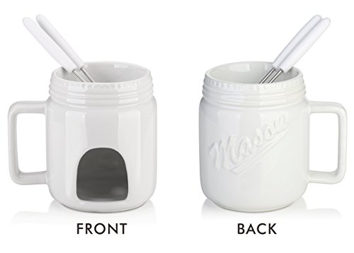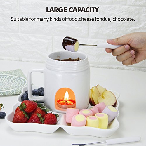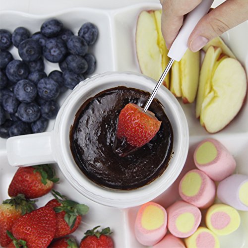 Easy fondue at home! It's a cold winter weather,choose DOWAN Tapas Fondue will melt everyone's heart. Fondue that's gaining more and more popularity,because who doesn't love dipping bread and other garnishes into fresh, hot cheese? The tapas fondue's convenient size makes it ideal for sampling different types of cheese fondues across a broad buffet table.Pick out your favorite fondue cheese or chocolate, experiment, and enjoy. HOW TO WORK ? *FONDUE FUN: Works for both cheese and chocolate,5 inch *3.6 inch small size is better keep warm a cheese or chocolate fondue all in the pot than bigger size fondue. *MICROWAVE SAFE: Melted cheese or chocolate in a flash - no stove needed.help you save space and fuel. *SIMPLE ELEGANT: Heated by a candle - no lighter fluid, no cords. *BEST GIFT:Your best gift choose for winter festival. WHY CHOOSE DOWAN PORCELAIN FONDUE? --DOWAN porcelain Approved by FDA, SGS, Global Quality Inspection Standards for Ceramic Items. Microwave, oven, and freezer safe. --Compared with other material, Ceramic is the material of choice for over-the-candle warming because it holds in the heat without letting the flame burn your butter or damage the delicate texture of your sauce. --It can be cleaned up in cold winter easily, and dishwasher safe. YOUR CONFIDENCE ASSURED - PEACE OF MIND GUARANTEE ?30 Day No-Chip Warranty. ??100% Satisfaction Guarantee. Our 30-day break-and-chip warranty covers every piece of item we sell. You can easily reach us by directly replying our after-sales service letter (usually sent after you placed an order) if there emerges a product problem or if you're dissatisfied with the product. We promise we will take immediate and feasible actions to address the problem to your satisfaction. May the odds be ever in your life with DOWAN. 0 |