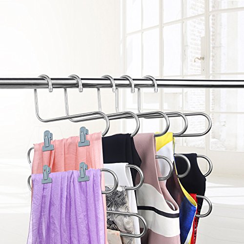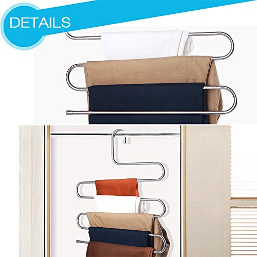 -. Title : HonTop S-type Multi-Purpose Pants Hangers Rack Stainless Steel Magic for Hanging Trousers Jeans Scarf Tie Clothes,Space Saving Storage Rack 5 layers