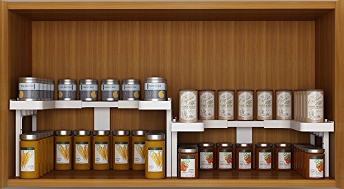 Product Description Stackable Organizer Rack Spices Seasoning for Cabinets, Crafts, Makeup Kitchen Organization with Strong Central Support Leg Capacity 30 lb for Each Shelf, One Set of Two Shelves 0