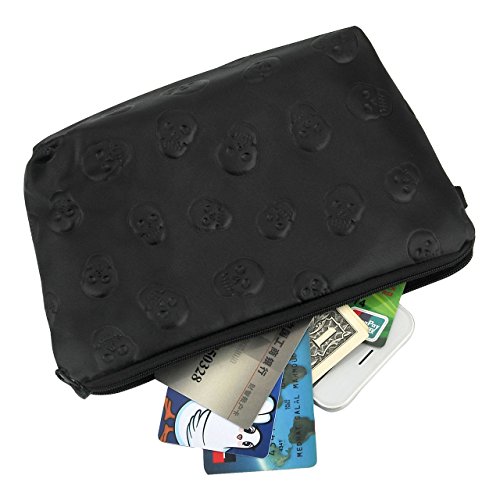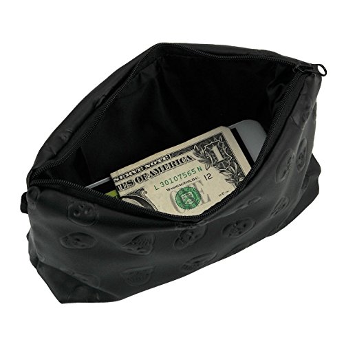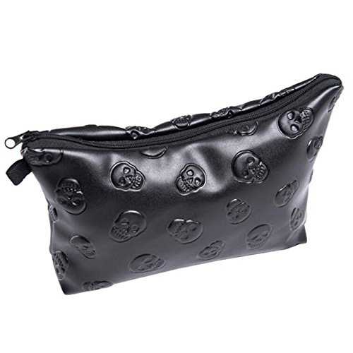 Faleto PU Leather Stylish Makeup Pouch Makeup Organizer Bag Portable Toiletry Cosmetic Bag Purse for Travel (Black Skull)