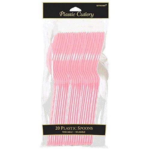 Party Perfect Reusable Plastic Spoons Tableware, New Pink, Full Size, Pack of 20