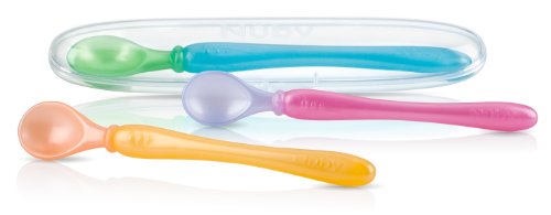 Nuby 3-Pack Easy Go Spoons and Travel Case, Colors May Vary