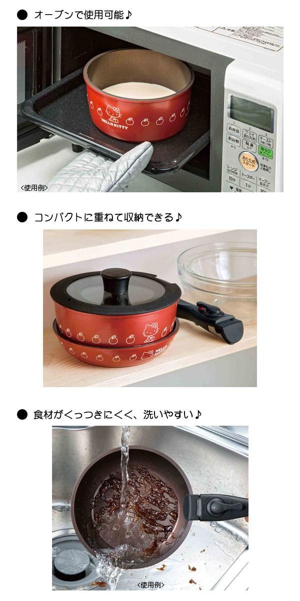 | 着脱式の取っ手付きで、コンパクトに重ねられます。内面はダイヤモンドコーティングで食材がくっつきにくく、丈夫で長持ち!!鍋・フライパン共用のガラスフタも付いています。 |
