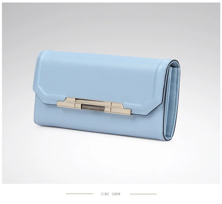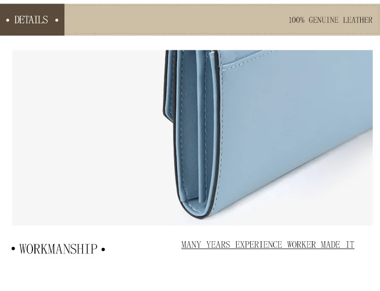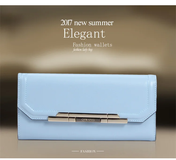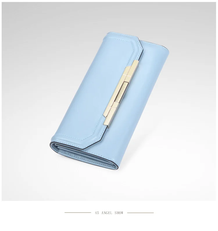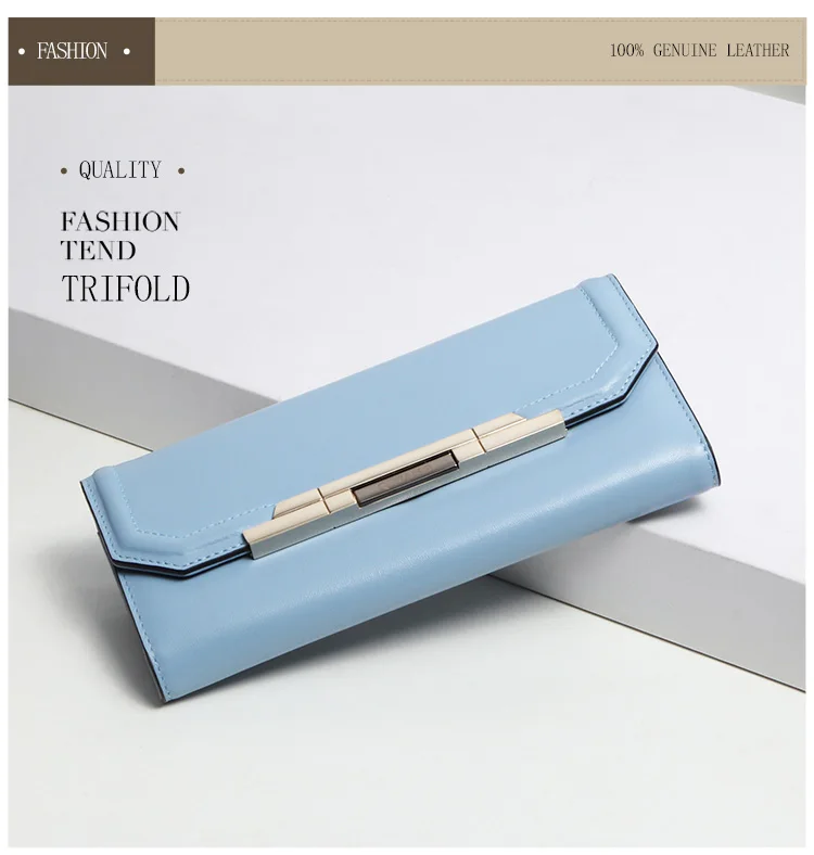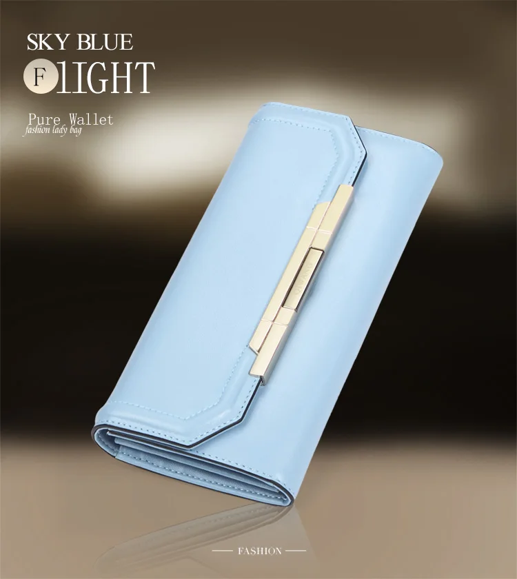 Item:Pure Light Blue Women Wallets 100% Genuine Leather Fashion Luxury Purs