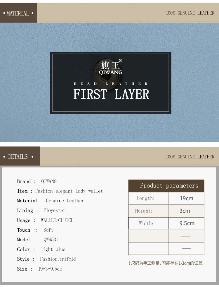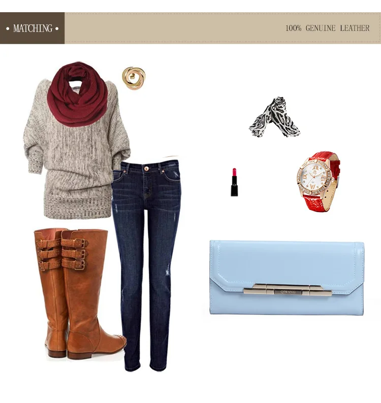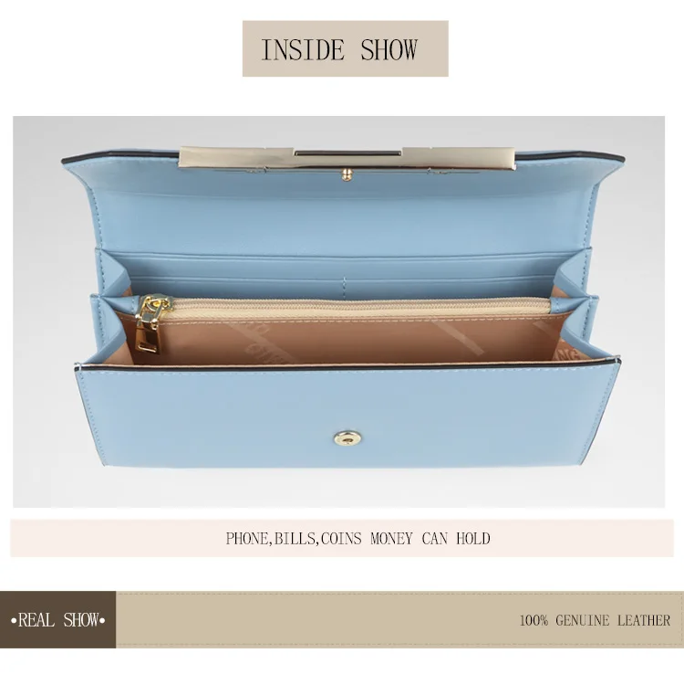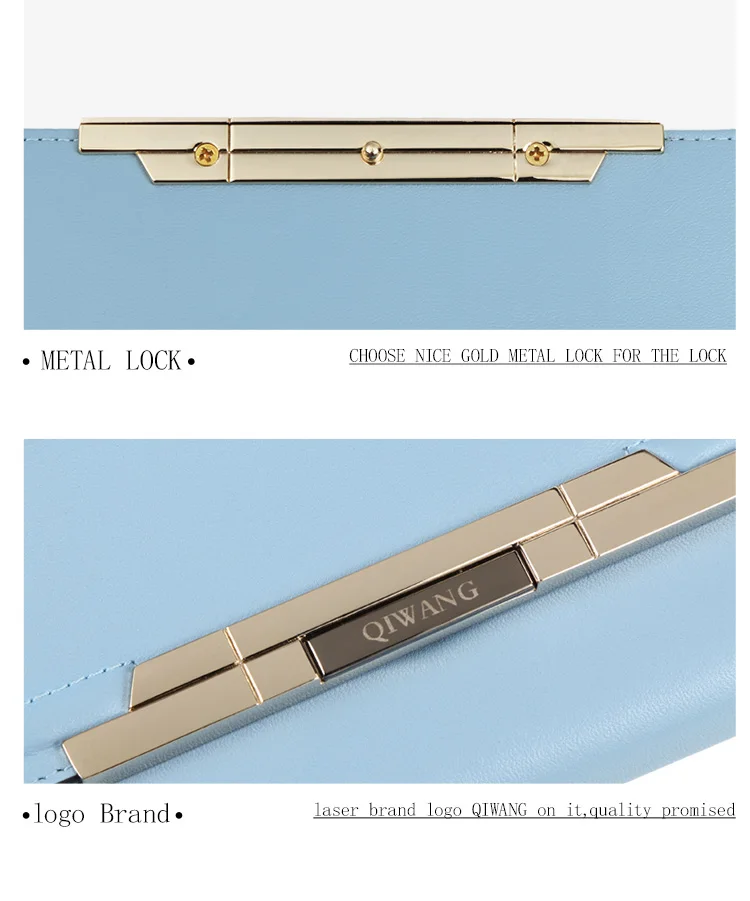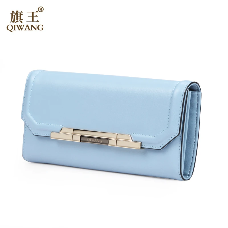 Item:Pure Light Blue Women Wallets 100% Genuine Leather Fashion Luxury Purs