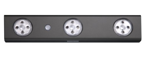 - Feature : Battery operated / Motion sensitive 3-light directional LED light / Manual on/off switch with 2 levels of brightness / Battery operated, no wiring needed / Lights can turn on automatically