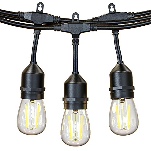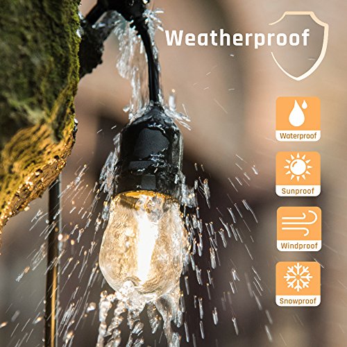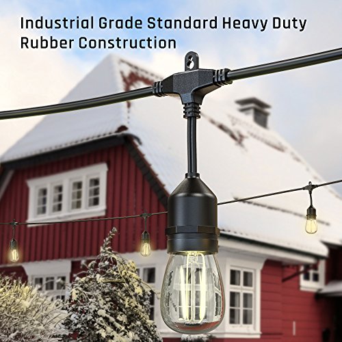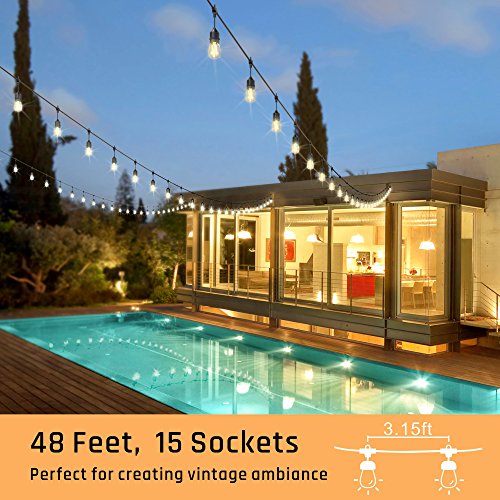 - 【48FT UL Certified Weatherproof Strands】 UL certified for outdoor use; these heavy duty edison string lights can withstand extreme hot/cold weather condition; the hanging sockets built with durable rubber construction & LED Bulbs are waterproof; they can support outside use for all year round