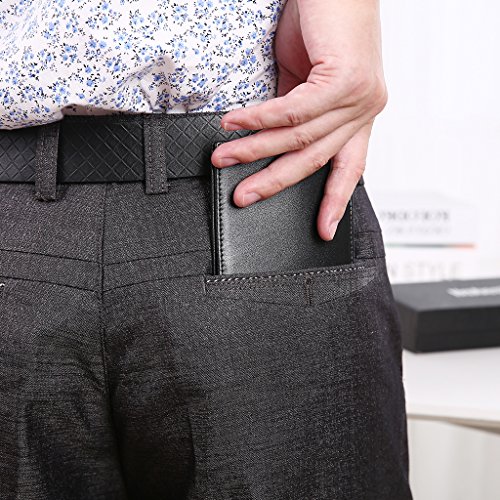 -. Feature : *Effective and Safty-The RFID Blocking Function are comfirmed by customer.Don't need to overpay for RFID protection. / *Stylish Design-SIZE:4.5" x 3.8'' The wallet is trifold,Designed 2 ID window,8 RFID card pockets,2 Currencty pockets.Enlarge credit card pockets quantity.Very convenient for travel men . / *#1 Grade Napa Genuine Leather- Made with the Soft, Smooth Genuine leather,The surface is very slim.It's easy in and out your pocket. / *Functional for your Travel:More Unauthorized RFID NFC and Scan in our life.When you shopping or travel,You won't worry about the Identity are stolen . / *Service-We Stick to give more High quality Wallet to You, You will Love Our RFID Wallet,Any reason You are not 100% Satisfied,Pls Tell us and Our Customer service will Make things Right.(Full Refund or Free Replacement).