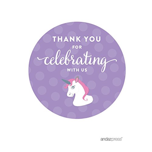 Andaz Press Birthday Round Circle Labels Stickers, Thank You for Celebrating With Us, Unicorn, 40-Pack, For Gifts and Party Favors