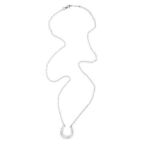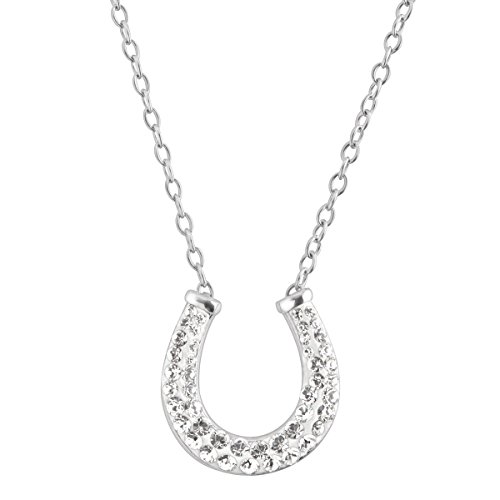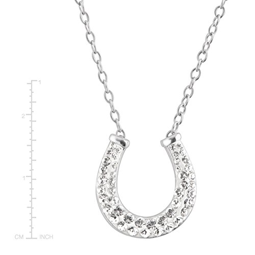 Try your luck with this horseshoe necklace! A sterling silver-crafted horseshoe features pavé-set round-cut white Swarovski crystals on the face, for a shimmering, eye-catching effect. Feature piece measures 11/16 by 11/16 inches with a total length of 18 inches.Feature