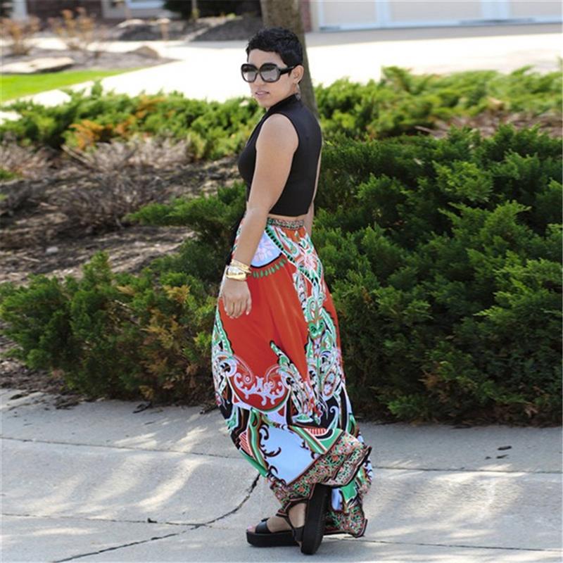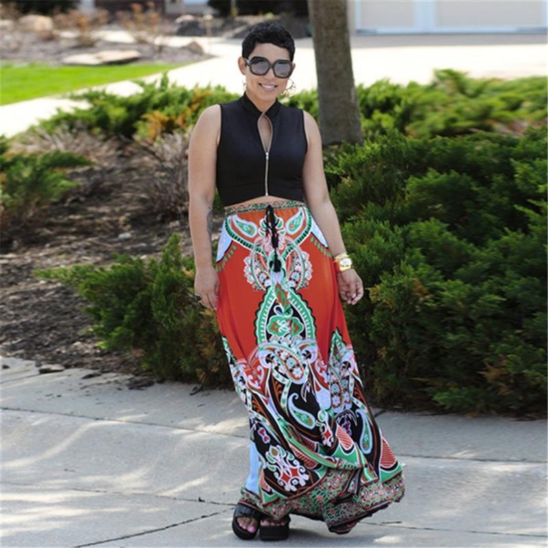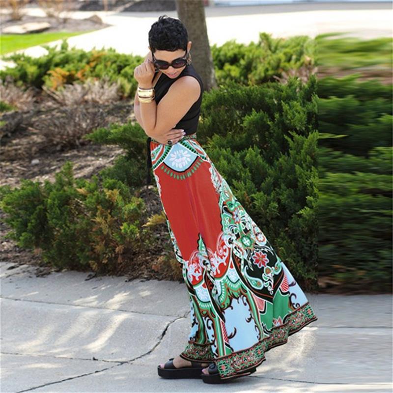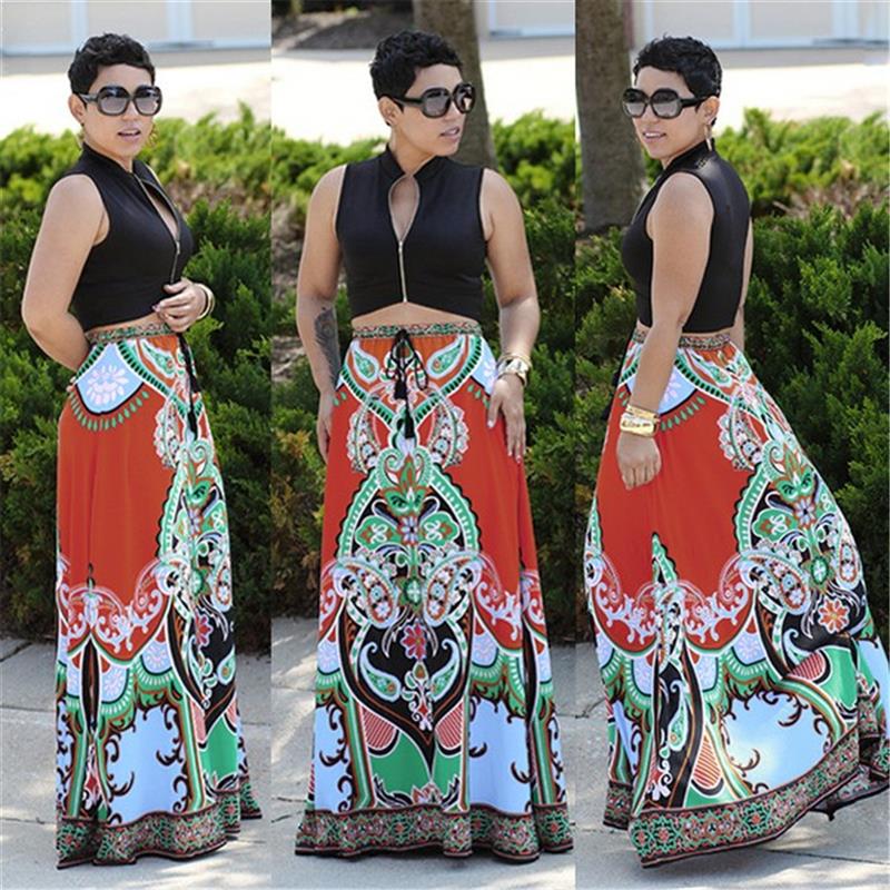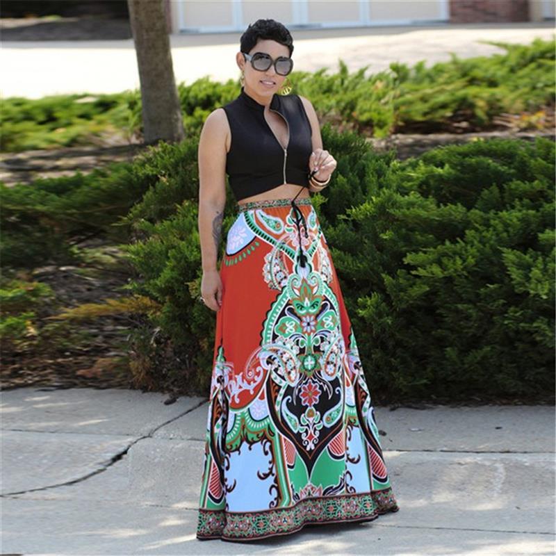 Floral Print,Elastic Waist,A-Line,Full Length,Long Maxi Skirt
