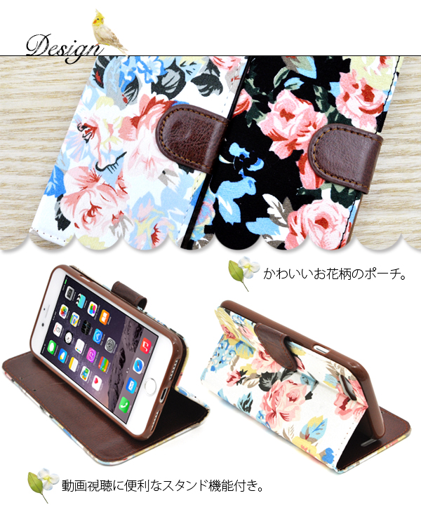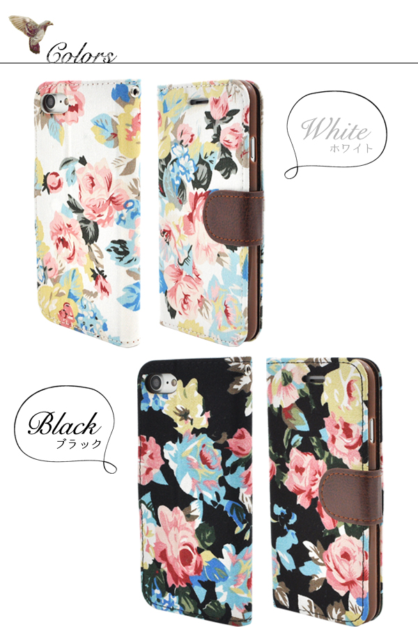 外側は花柄、内側は落ち着いたレザーデザインです。