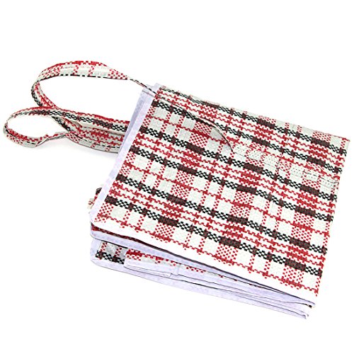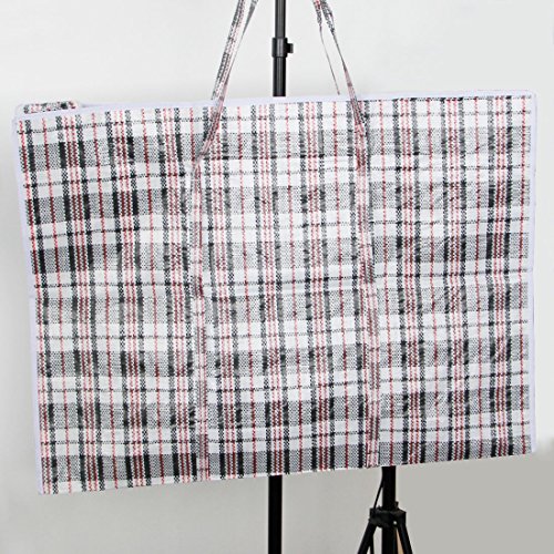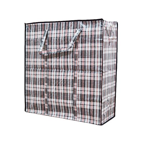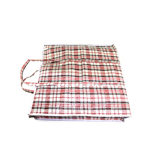 Pack of 2 Plastic Checkered Storage Laundry Shopping Bags W.Zipper & Reinforced Handles Grocery Tote Bags, Reusable Frakta Storage Bag Size 19.7"x 19.7"x 4.7"