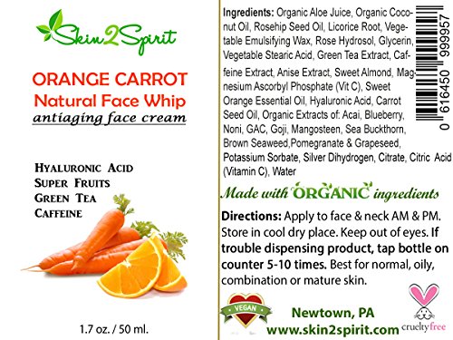 -. Title : Orange Carrot Antiaging Face Whip - Organic - Natural - for All Skin Types, Best for Oily Skin - Plumps Fine Lines – With Hyaluroic Acid, Caffeine, Vitamin C, & Green Tea (1.7 oz)