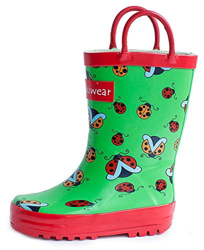 -. Binding : Apparel -. Brand : Oakiwear -. Department : girls -. Feature : Made of 100% rubber with a traction tread / Super easy to wash / Waterproof with a fun design that kids love / Features easy-on handles / 60-day manufacturer's warranty -. ProductGroup : Shoes -. ProductTypeName : SHOES -. Title : Oakiwear Girls Rubber Rain Boots (Little Kid/Big Kid) w/ Easy-On Handles