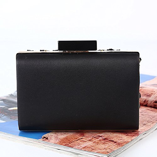 (missfiona)/Accessories/Handbags/DIRECT FROM USA/Missfiona Vintage Jeweled Flower Embellished Satin Evening Clutch Bag Top-handle Dinner Purse Black