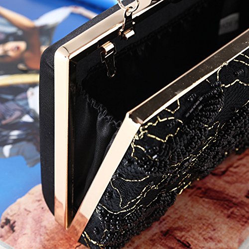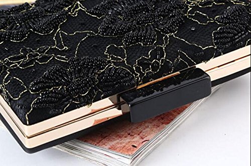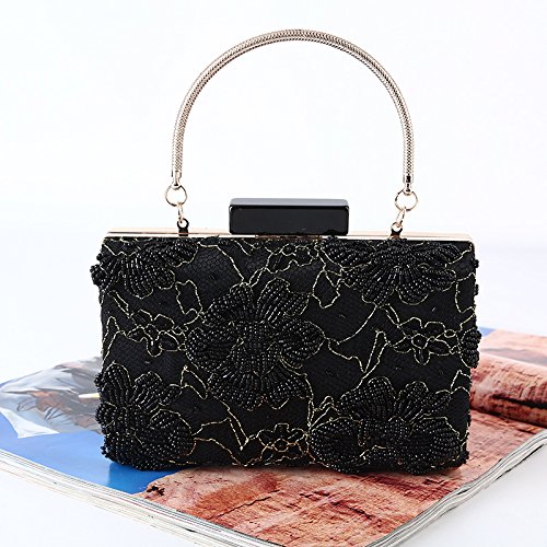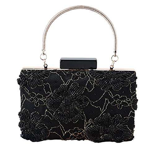 Product Description Vintage style black jewels beaded flower shaped embellished detail formal dinner clutch for women. Unique design with top-handle. nice for any occasion. 0