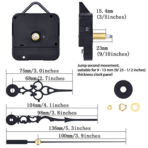 - Total shaft length: 23 mm (9/ 10 inches), thread length: 15.4 mm (3/ 5 inches), suitable for 9 - 13 mm (9/ 25 - 1/ 2 inches) thickness clock panel