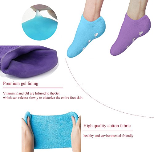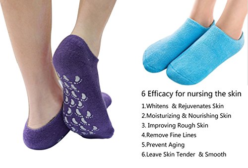 Keep moisturizing your skin The gel socks with added natural essential oils, avocado oil, canola oil, grape seed oil, jojoba oil, and olive oil will continuously release the TPR mineral oil that will repair dry, rough skins, and cracked heels.