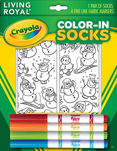 Studio : Living Royal Publisher : Living Royal Binding : Toy Product Description Become your own sock designer with our Color- In Socks in collaboration with Crayola This pack includes: *1 pair of Snow Buds Color-In Socks *4 permanent Crayola fabric markers Only available in ankle socks: *ONE SIZE FITS MOST *fits child age 5 through women size 11 *RIBBED STRETCH BAND AT TOP, SEAMED TOE *UNISEX *100% POLYESTER *Imported * 7.5" L X 3" W *PRINTED ON ONE SIDE ONLY 0