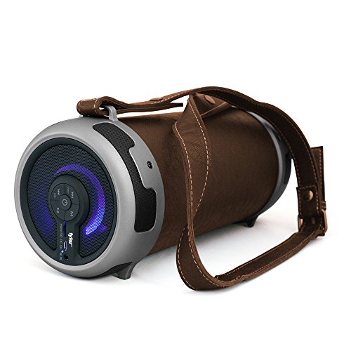 -. Title : Tyler Portable Wireless Bluetooth Stereo Cylinder Speaker with LED Light, Brown