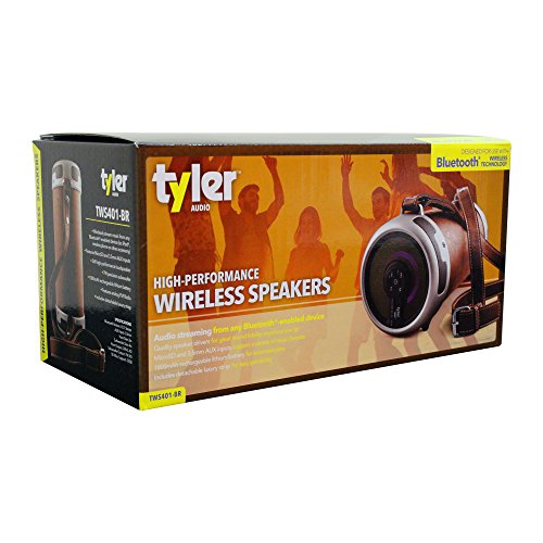 -. Feature : Huge Stereo Sound: Enjoy crisp, clear audio with impressive volume powered by dual watt drivers. Combined 11W output the highest available in this P.R.Ice range. / Bluetooth 4.0: Instant pairing and voice prompts let you easily connect to your smartphone or tablet over a 33-foot distance. It remembers the last eight devices used, so reconnecting is automatic. / Booming Bass: Features MaxxBass technology and two passive subwoofers for enhanced bass performance. Hear the soaring highs and deep lows of all your favorite tracks. / 8 Hours of Music: Play up to 160 songs at 50% volume before needing to recharge. With Micro SD Card Support, FM Radio, and Auxiliary Line-In (3.5 mm) for non-Bluetooth devices. / What You Get: Tyler Portable Wireless Premium Stereo Bluetooth Speaker, Micro USB cable, 3.5mm audio cable, welcome guide, carrying strap for easy portability, and 1 year warranty!
