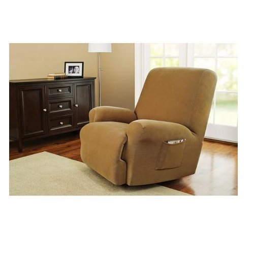 -. Binding : Kitchen -. Brand : Better Homes and Gardens -. Color : Brown -. Feature : Fits recliners 88" (223 cm) around chair back / For recliners with right-side handle and continuous footrest / Protects furniture against stains and pet hair / Made of 94% polyester and 6% spandex / Machine washable to make life easier -. IsAutographed : 0 -. ProductGroup : Home -. ProductTypeName : HOME -. Title : Better Homes and Gardens One-Piece Stretch Fine Corduroy Recliner Slipcover Brown