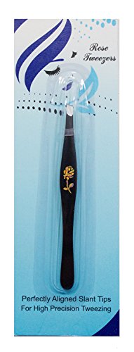 Rose Tweezers - Brow Shaping and Plucking Tweezers - Slant Tip - Maximum Precision Every Day Tweezing - Perfectly Aligned Tips - Stainless Steel Hair...