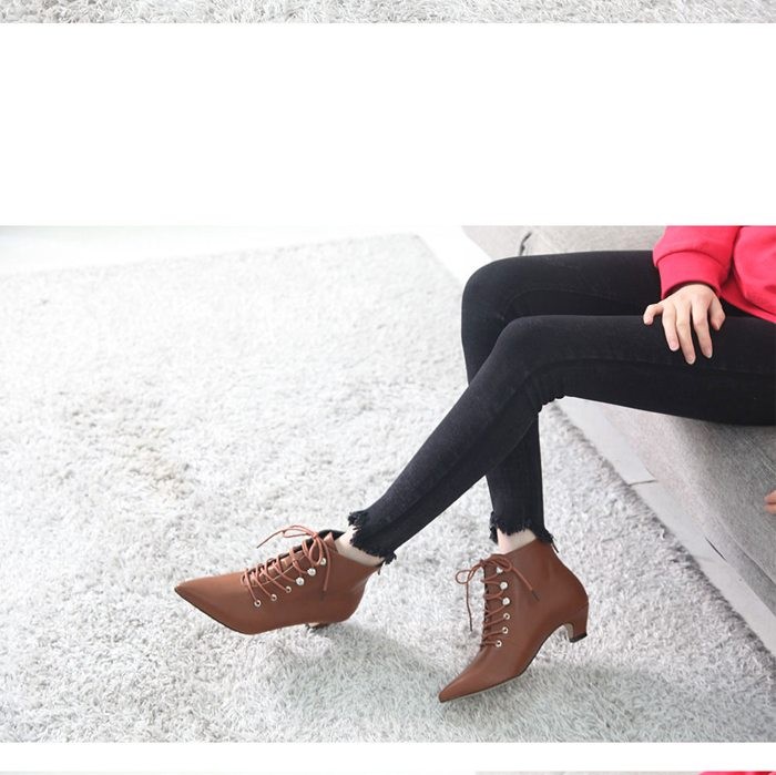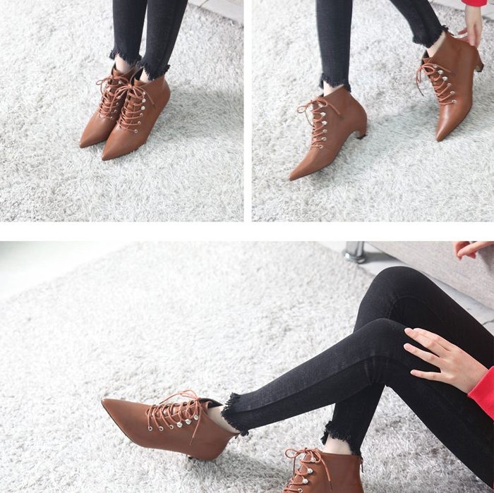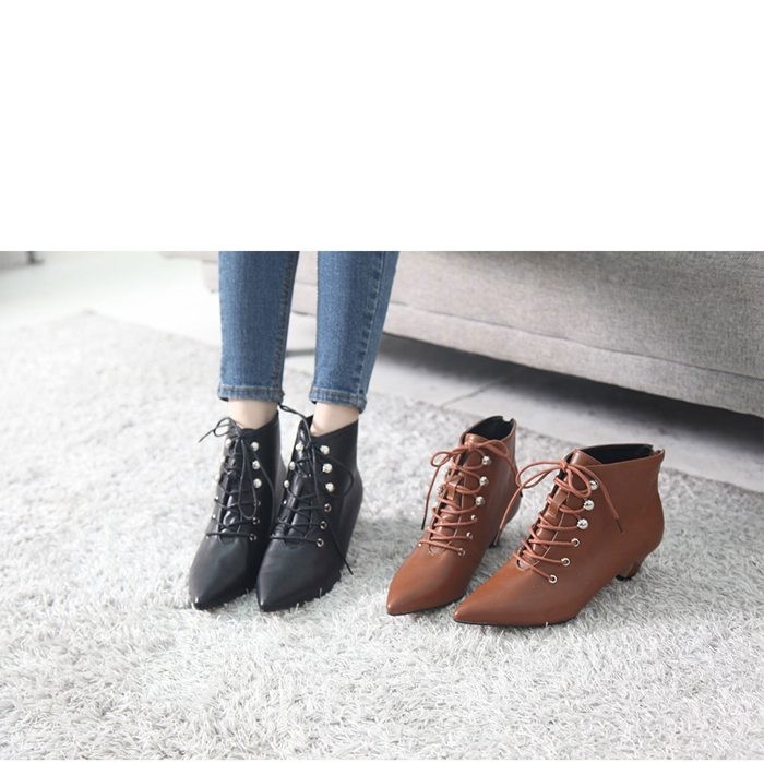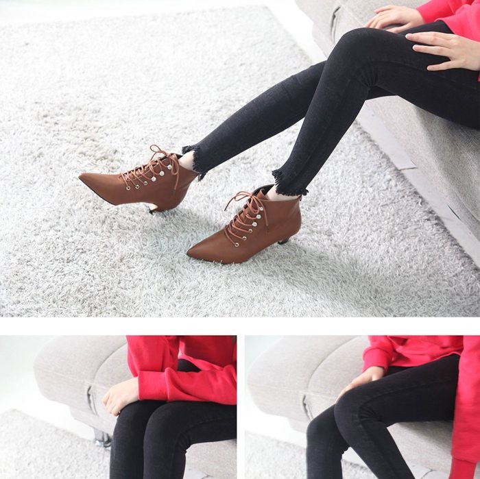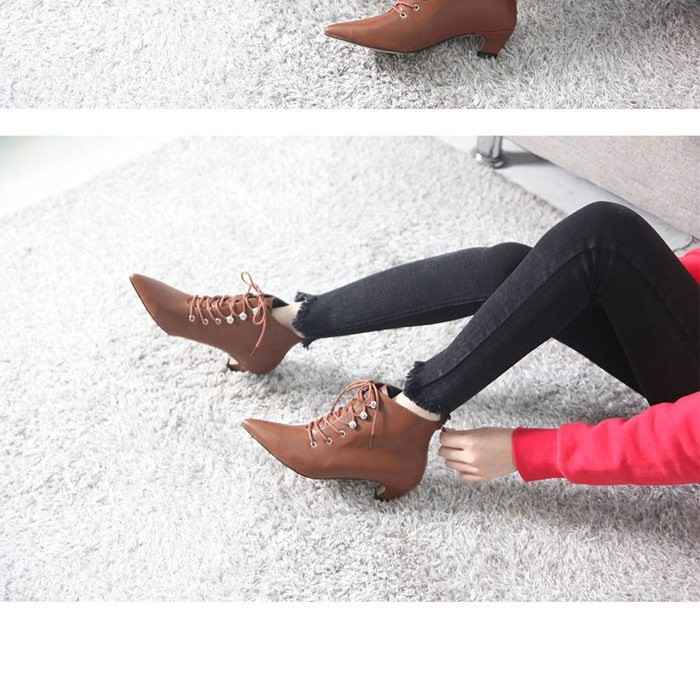 商品名:ブーティー レディース ブーティ ポインテッドトゥ レースアップ 2017 秋冬 ファッション 靴 婦人靴