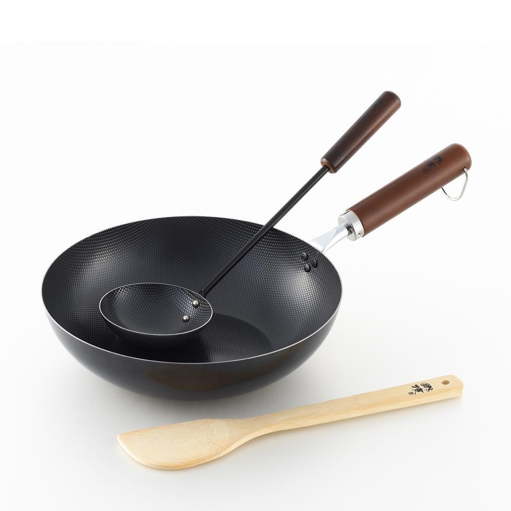| 熱廻りのいい鉄鍋とお玉と竹べらのセットです。 |