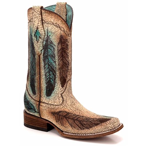 (Corral Boots)/Women's/Boots/DIRECT FROM USA/Corral Ladies' Sand Engraved Feathers Cowgirl Boots