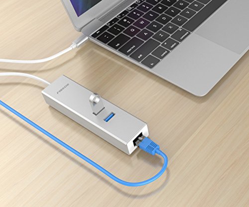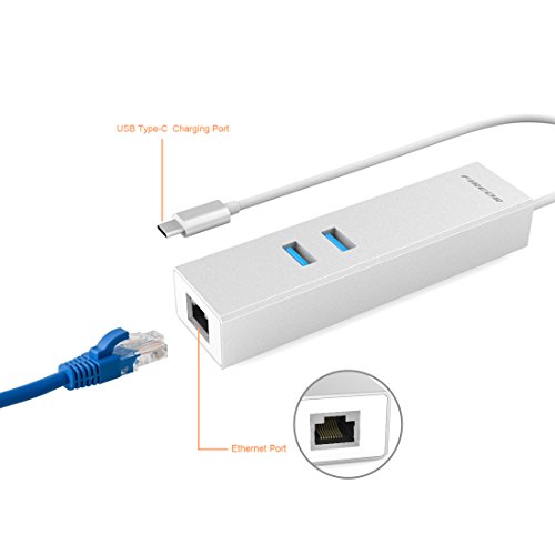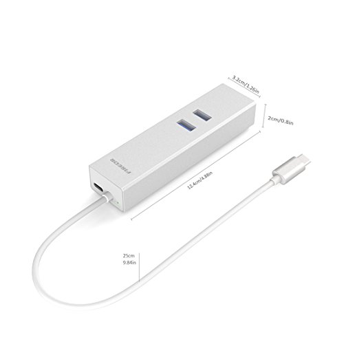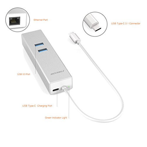 USB C Hub, FIREOR USB 3.0 Hub with Gigabit Ethernet Adapter and Type C Charging Port for New MacBook, MacBook Pro 2016, Google ChromeBook Pixel 2015 and More USB Type C Devices. (Silver Aluminum)