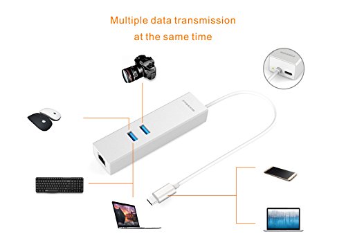 -Sleek & Slim: With light weight and small size, it is designed compact to match with MacBook Pro 2016 and other devices with USB C port and easy to carry 2 transmission ports and gigabit ethernet port combination could save your time and space.