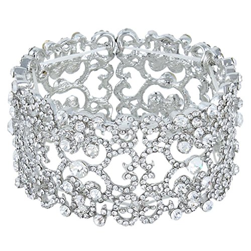 -. Binding : Jewelry -. Brand : EVER FAITH -. Color : Silver -. Department : womens -. Feature : [!]EVER FAITH is a US registered trademark and Ever Faith Jewelry(former name: Kiss Bling) is its only owner. We will pursue legal action against trademark infringement in case of UNAUTHORIZED sale or resale. / Vintage Inspired Art Deco Stretch Full Clear Crystal Bracelet / Stretch Bracelet. Width: 3.4cm(1.33"). / Wrapping: Bracelet is bubble wrapped. Putting in a turquois box with soft cushioning. Also includes turquois velvet pouch. / If you need assistance please contact us. -. Label : EVER FAITH -. Manufacturer : EVER FAITH -. Model : N04581-1 -. MPN : N04581-1 -. PartNumber : N04581-1 -. ProductGroup : Jewelry -. ProductTypeName : FASHIONNECKLACEBRACELETANKLET -. Publisher : EVER FAITH -. Studio : EVER FAITH -. Title : EVER FAITH Women's Crystal Bride Heart Art Deco Elastic Stretch Bracelet Clear Silver-Tone