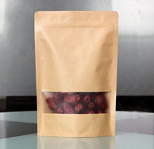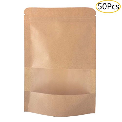 SumDirect 50Pcs Kraft Zip Lock Stand Up Bags Pouches with Notch and Matte Window (50, 5.9"x8.6")