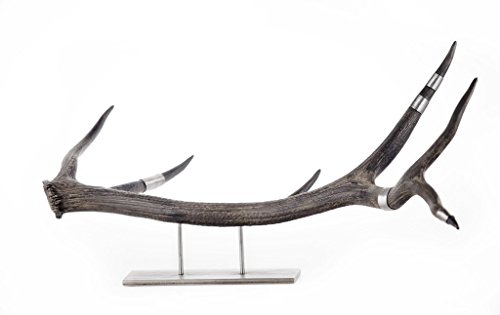 -. Brand : Phylum Design -. Color : Black with silver wire -. IsAdultProduct : 0 -. ProductGroup : Guild Product -. ProductTypeName : GUILD_HOME -. Size : Medium -. Title : Real antler stand stained black with stainless steel wire wrapped around it