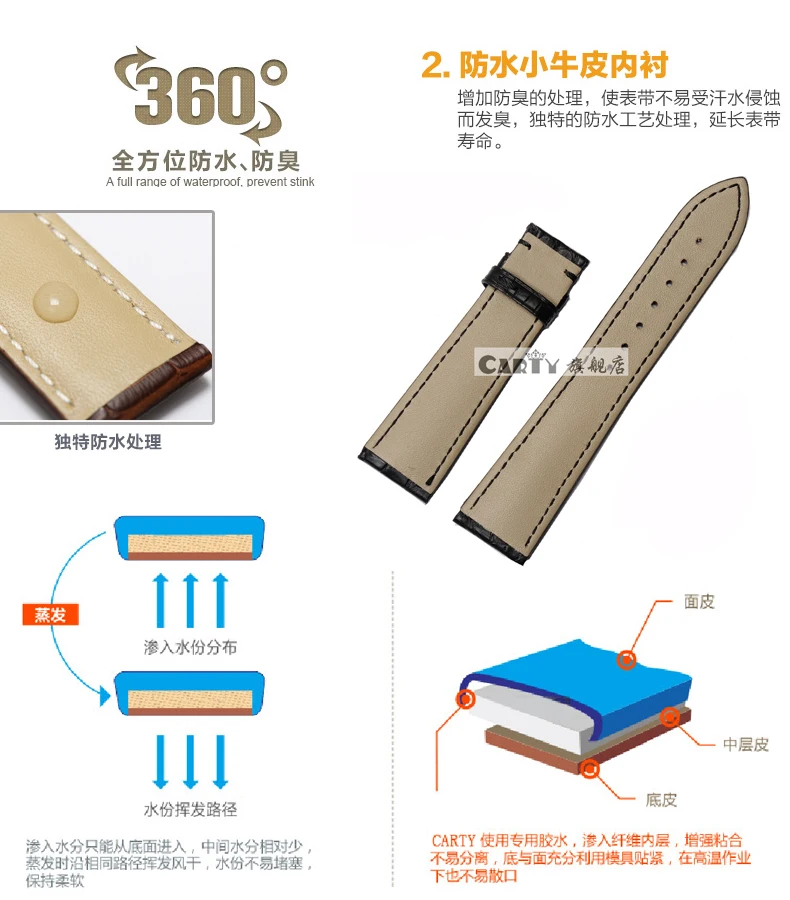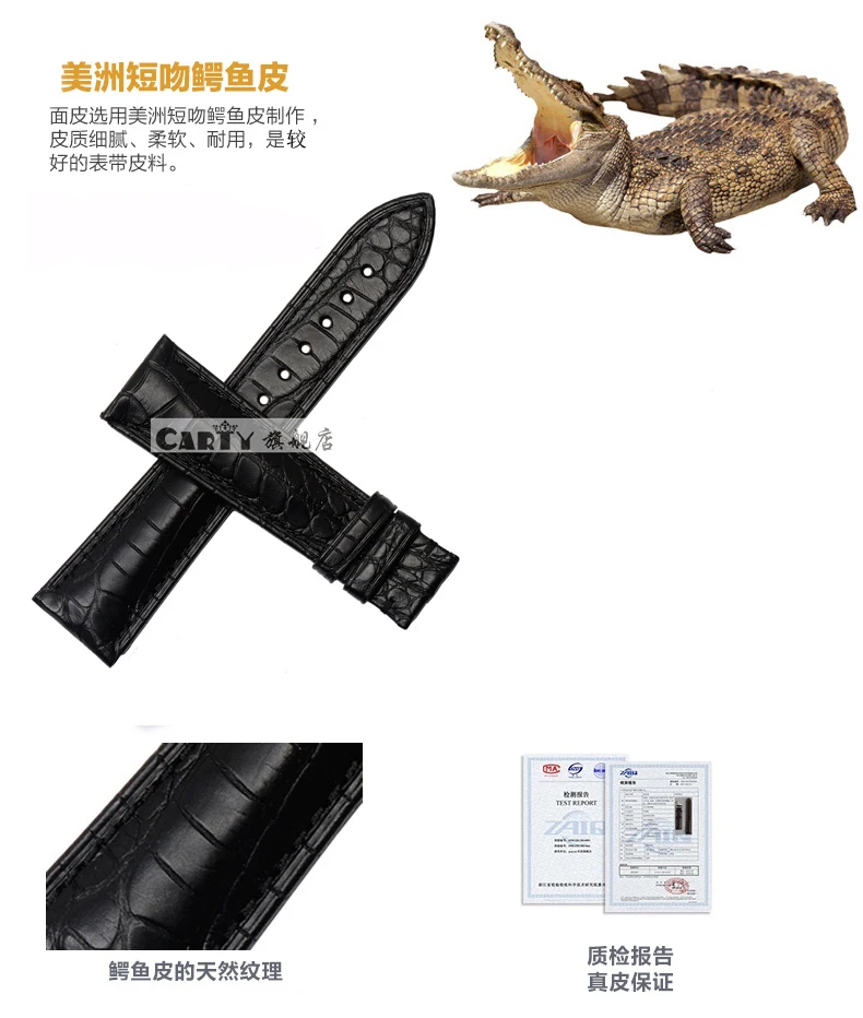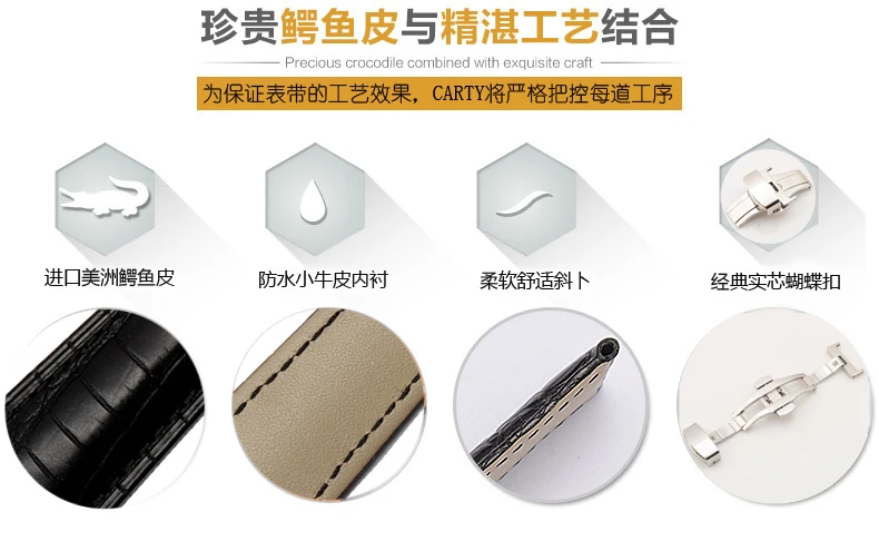 | [해외]Carty 악어 손목 20 미리메터 18 미리메터 시계 스트랩 + 무료 설치 도구 + 실버 더블 클릭 butterfly 버튼 |