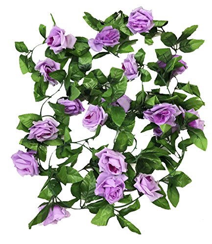 Crt Gucy 2 Pack 15 FT Fake Rose Vine Flowers Plants Artificial Flower For Home Hotel Office Wedding Party Garden Craft Art Décor, Light Purple