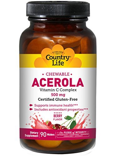 CHEWABLE ACEROLA C COMPLEX 500 mg. Vegetarian/Kosher. Specially formulated in an all natural base containing Fructose, Glucose, Acerola, Black Currant and Rutin.