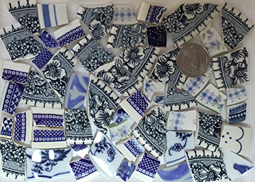 MOSAIC TILE ~ HAND CUT Dish China / Ceramic Pieces ~ Supply for Mosaics Arts & Crafts ~ Mixed Patterns Blue & White Tiles (T#365)