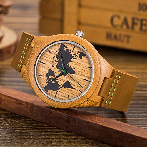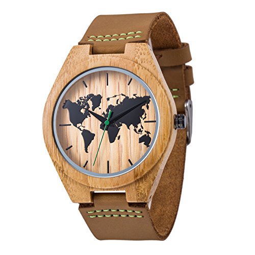 Handmade & Unique Vintage Style: World Map Dial Design. This is the perfect watch for a vintage look. It gives you a cool casual and retro style look that goes well with any attire. With it, you are not only wearing a watch on your wrist, but also a feeling of contact with nature. It also weighs only 45 grams which greatly adds to the comfort aspect.
