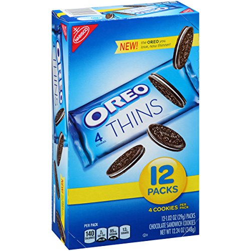 - This 12.24-ounce box includes twelve 1.02-ounce single-serve packs of Oreo Thins Chocolate Sandwich Cookies.