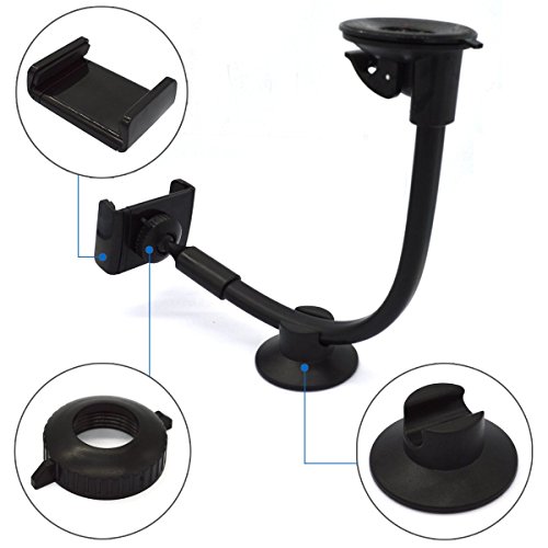 -. Feature : High quality ABS materials beautiful long arm design and solid grip that securely push electronic devices close to your fingers and sight / Latest unique design car holer with extremely strong suction and very steady support for both large screen smartphones like iPhone 6 Plus or Samsung Note 4 and tablets Size between 9-10 inches / Up to 13 inches in total length from holder back to suction cup that easily push gadgets to your face even inside van large SUV or truck / Excellent support for any cellular phone or tablet PC with width from 2.2 inches to 5.5 inches through included two sizes Holders / Easy to install one-touch mounting system locks releases or rotates the device with just one hand operation