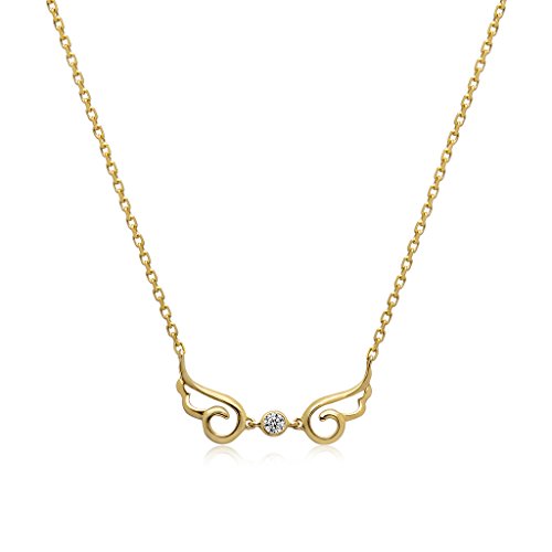 -. Title : TARA Legacy 14k Gold Diamond Angel Wings Pendant Necklace (0.02cttw, G-H Color, SI1-SI2 Clarity), 15"-18"