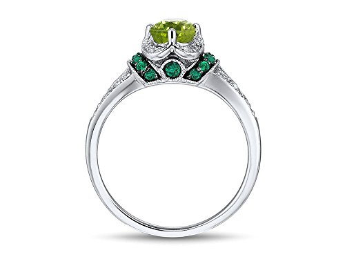 -. Title : Peridot Ring in Sterling Silver with Diamond and Lab Created Emerald Accents